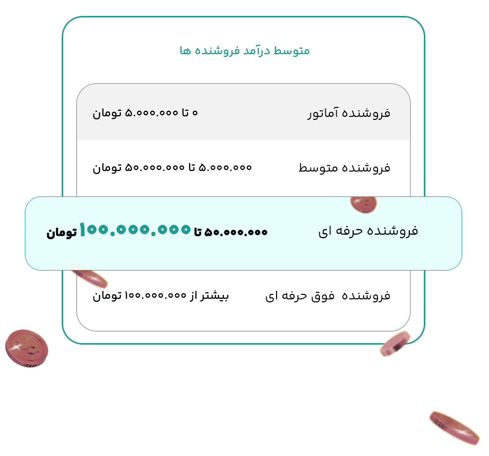 میزان درآمد فروشنده ها بستگی به سطح توانایی فرد یا مجموعه و فروش محصولات باکیفیت و ارزان قیمت خواهد داشت. برای مثال یک فروشنده میتونه همزمان در چند برند و دسته بندی فعالیت کنه که این یعنی تعداد سفارشات بیشتر. ولی به طور میانگین درآمد یک فروشنده بین 5.000.000 تومان تا 100.000.000 تومان می باشد. روش های کسب درآمد: